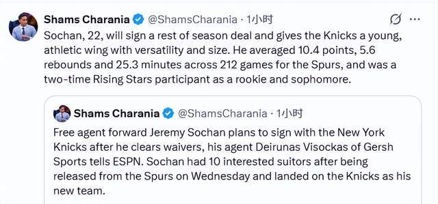北京時間2月13日,據(jù)名記Shams報道,杰里米-索漢計劃在度過澄清期后加盟紐約尼克斯。